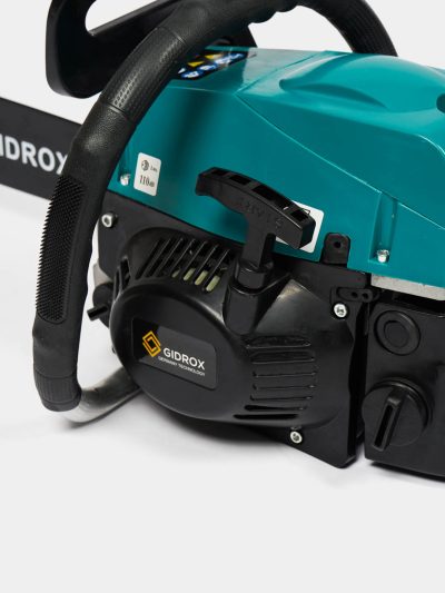 Бензопила GIDROX 52cc предназначена для бытового использования. Ввод в работу не составит труда благодаря ручному стартеру с системой запуска “Легкий старт”. Инерционный тормоз служит для мгновенной остановки режущей части в случае отдачи. Двигатель защищен от перегрева за счет системы принудительного охлаждения – это продлевает срок службы инструмента.